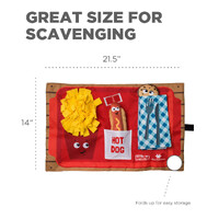 Outward Hound Activity Matz are fun to use, easy to clean, and perfect for both mental and physical exercise. The Fast Food Fun activity mat comes with optional closures to level up the challenge! Once your dog has sniffed out the treats or kibble from the plush material, increase the challenge by placing food in the pockets and hiding them under an extra layer by stuffing in the hot dog. For an even harder challenge, hide the tasty rewards under hook & loop closures. When not in use, the activity mat folds up for easy storage.