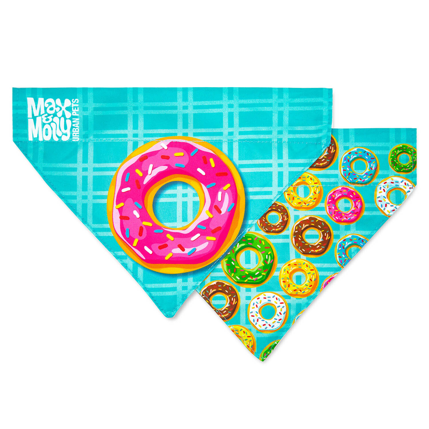 The Max & Molly Pet Bandana is a pet collar accessory that slides on a pet collar and features a reversible design. This bandana can match with the Max & Molly Donuts Collars or Leads, sold separately.