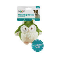 The Outward Hound Howling Hoots Plush Squeaky Owl Dog Toy is a plush dog toy featuring a fluffy, round owl with a built-in, full-body squeaker that squeaks when squeezed or bounced. This dog toy also features Outward Hound’s exclusive K9 Tuff Guard technology with reinforced no-rip canvas fabric lining, double-stitched seams, and strong fused backing.