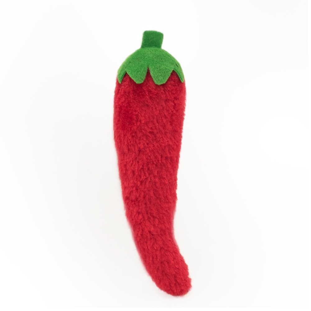 The ZippyClaws Kickerz Pepper is a plush catnip cat toy designed for kicking play and features an elongated shape and catnip inside.